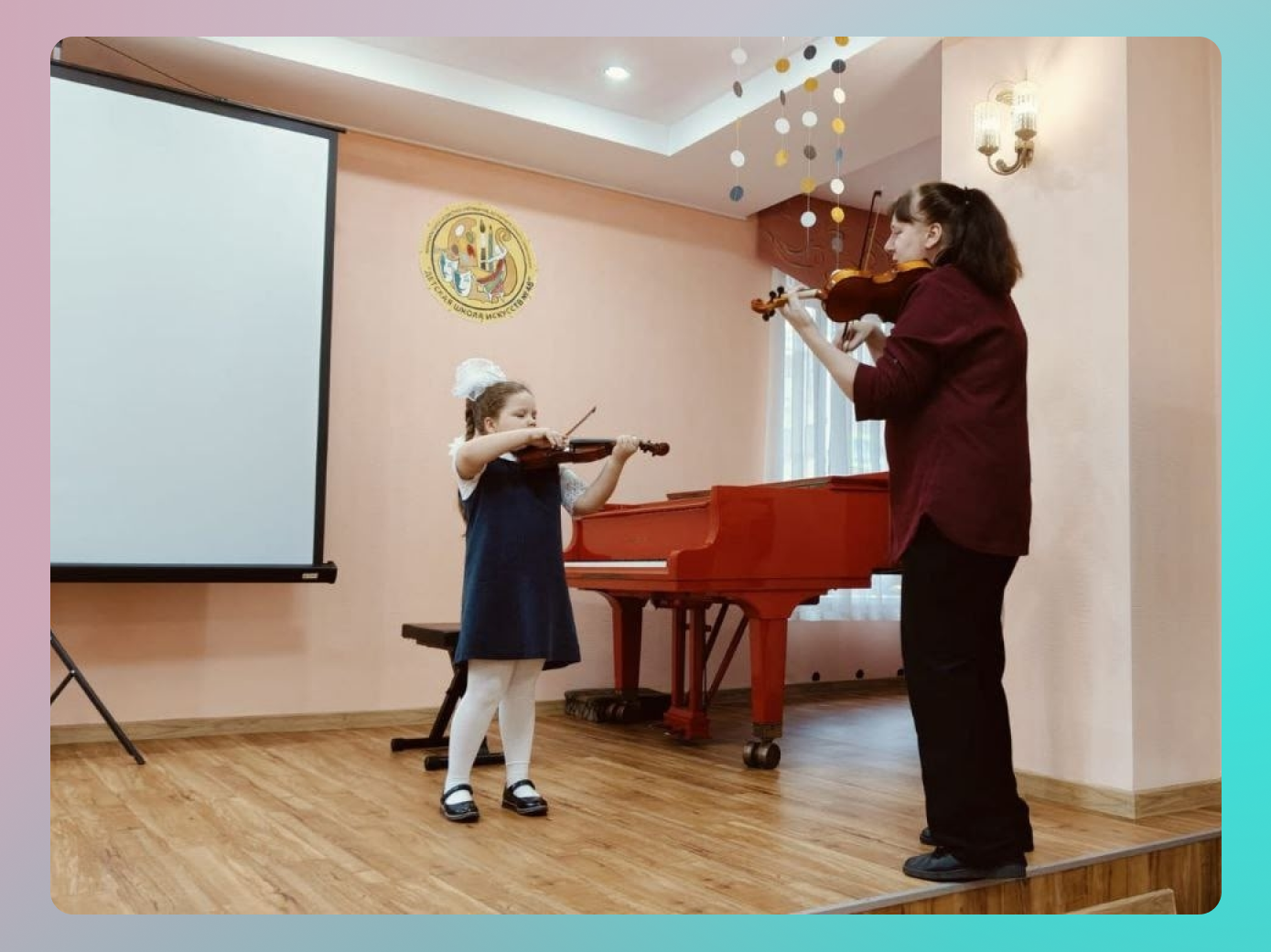 Болотникова А. А. провела занятие с одной из учениц школы. В ходе мастер‑класса она поделилась: своими методическими наработками, приёмами работы над сложностями в скрипичной технике, способами развития музыкального мышления у юных исполнителей.