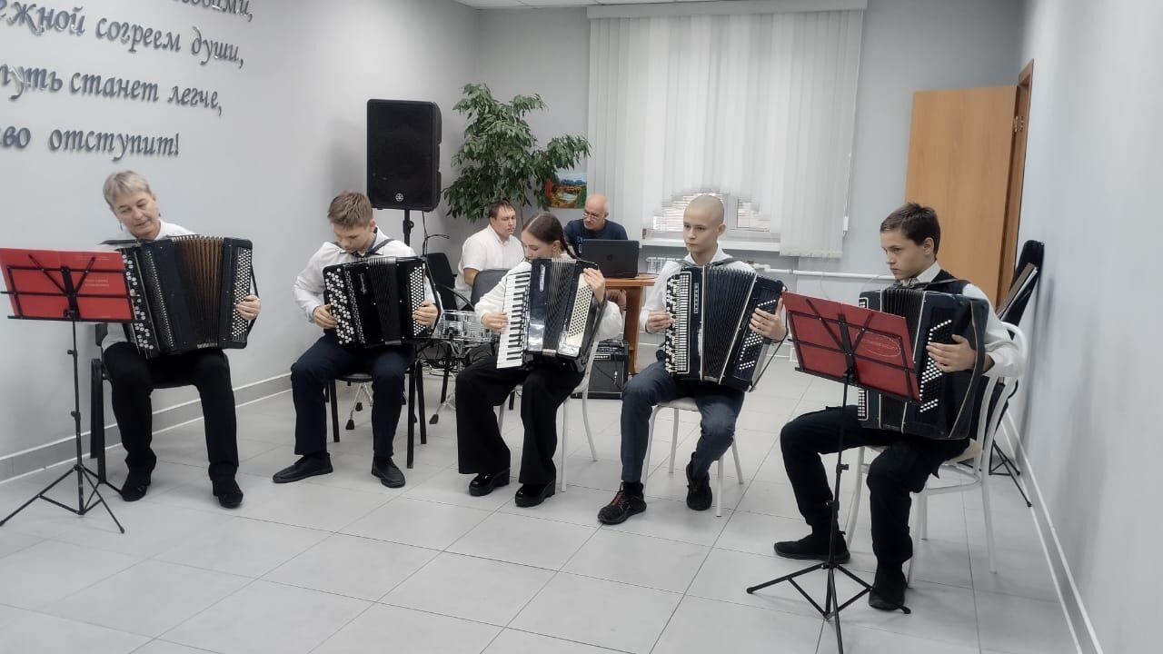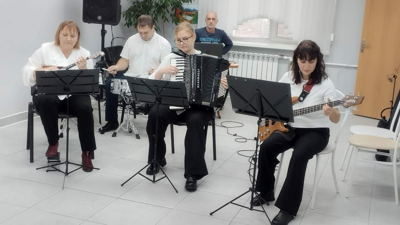 Сегодня учащиеся и преподаватели школы выступили с концертной программой в центре социального обслуживания г. Осинники.