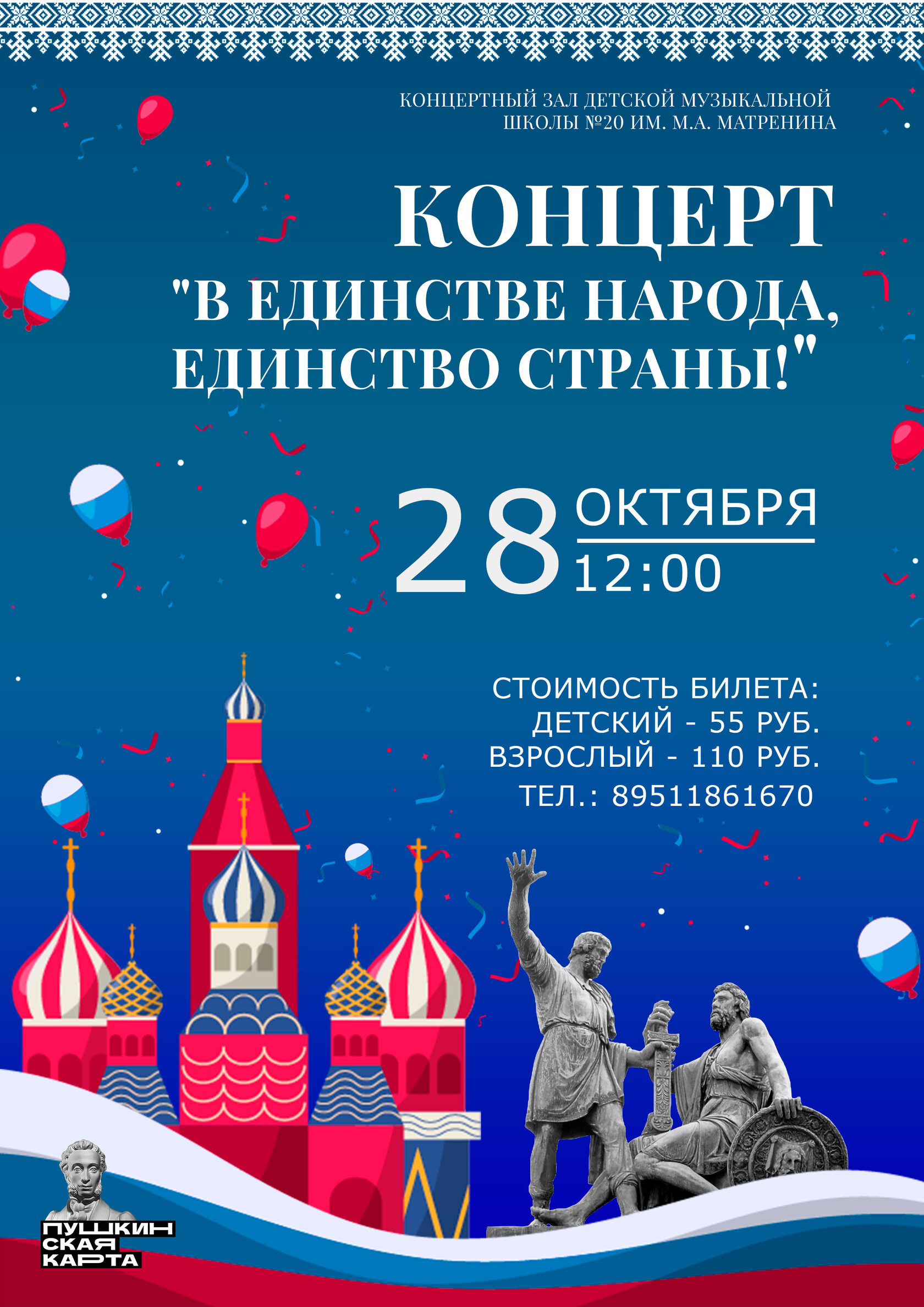 Сегодня в концертном зале нашей школы состоялся праздничный концерт, посвящённый Дню Народного Единства "В единстве народа - единство страны! ".